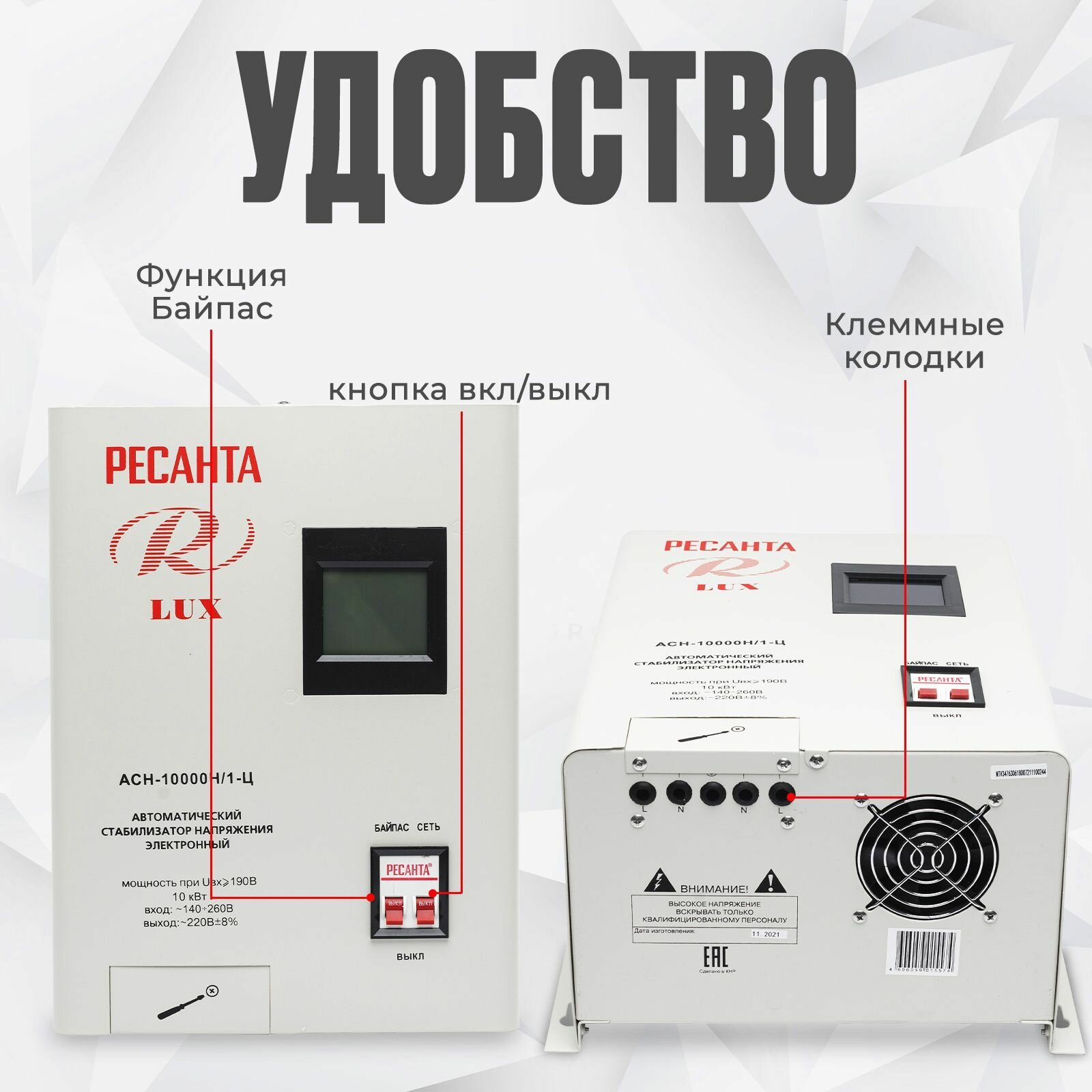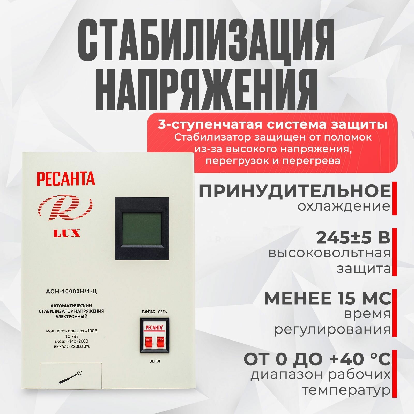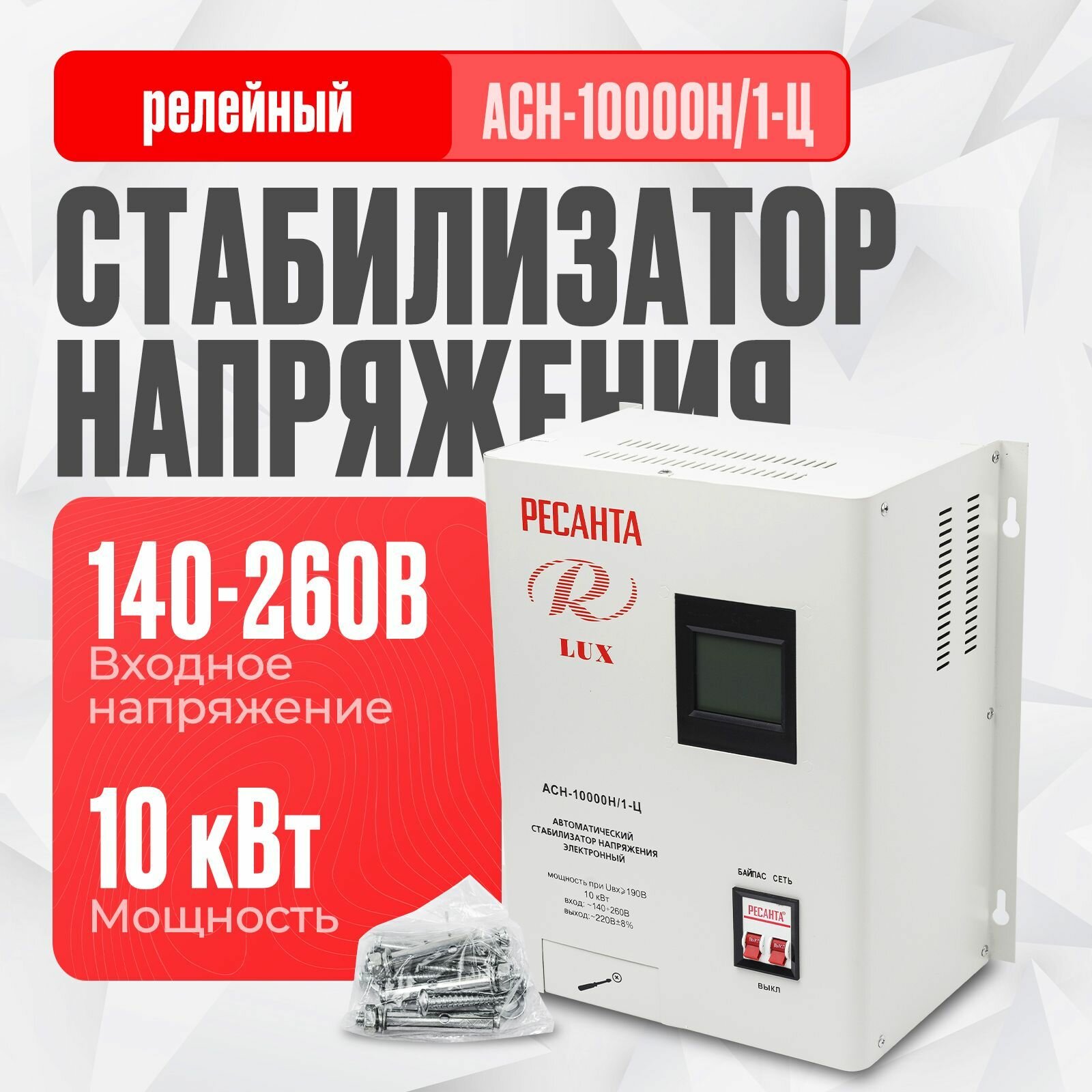 Стабилизатор напряжения серии LUX РЕСАНТА АСН-10000Н/1-Ц, 10 кВт, настенный