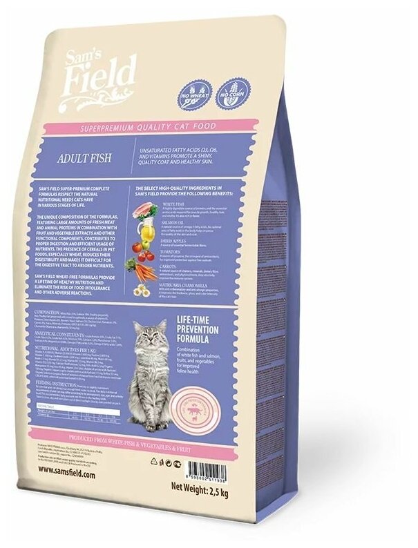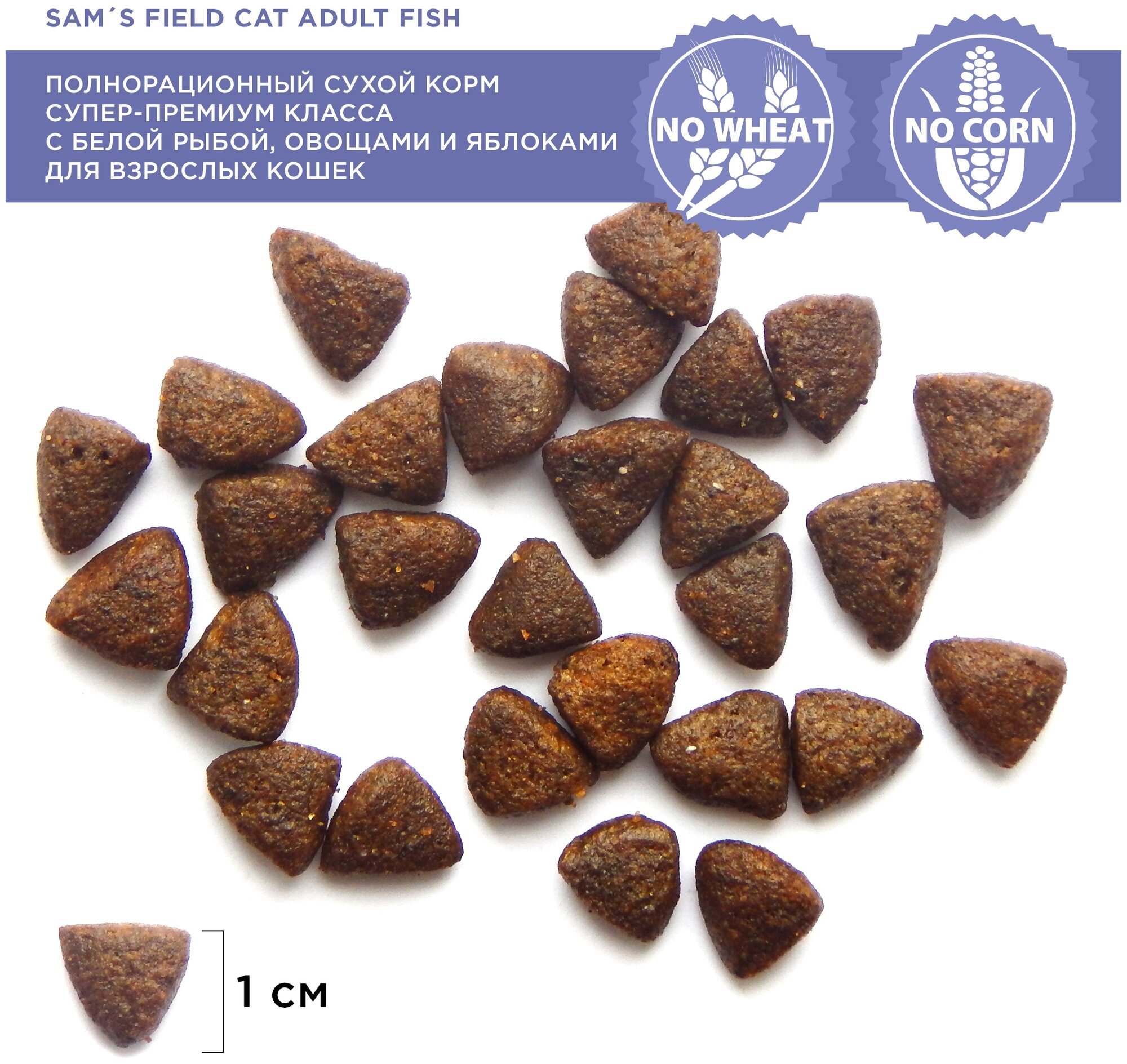Сухой корм для кошек Sam's Field Adult Fish для взрослых кошек с белой рыбой, овощами и яблоками 2.5 кг интересное: