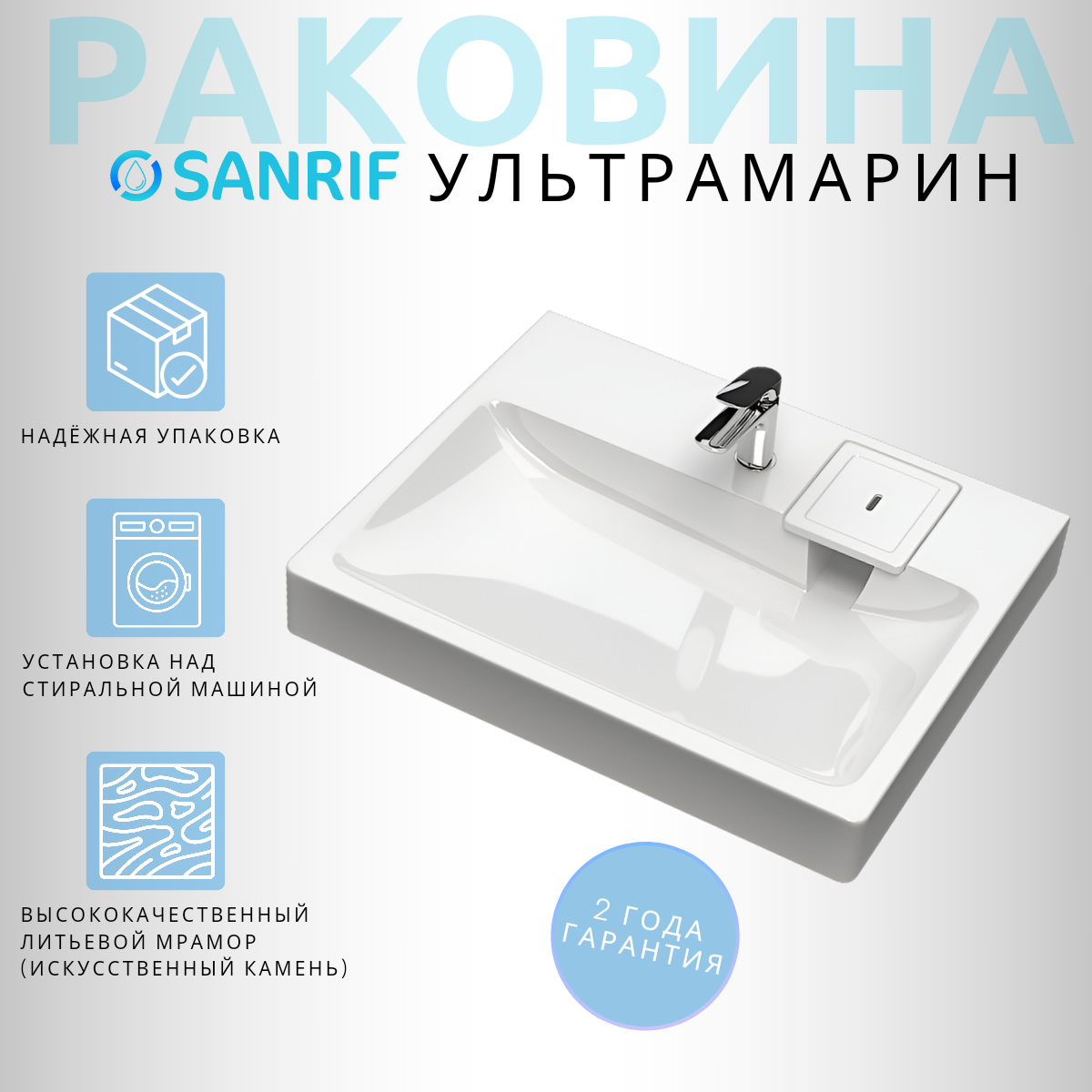 Раковина над стиральной машиной Sanrif Ультрамарин 60x55 интересное: