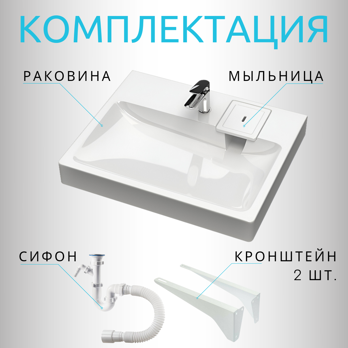 | Дополнительная информация | в комплекте сифон и кронштейны, мыльница |