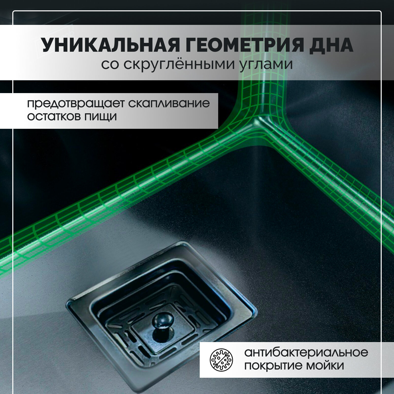 Мойка для кухни из нержавеющей стали с квадратным сливом, 50х44х21,цвет графит,кухонная мойка, раковина для кухни интересное:
