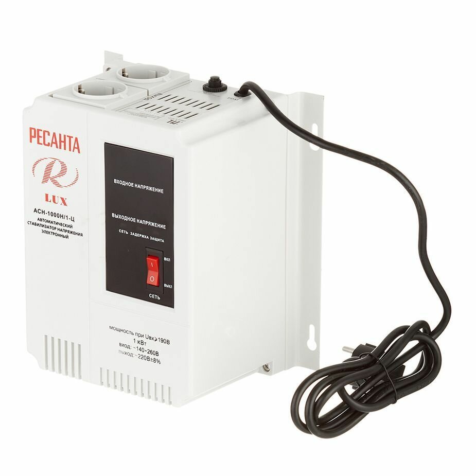 Стабилизатор напряжения Ресанта АСН-1000Н/1-Ц Lux (однофазный, 140 В - 260 В, 5,3 А, 1 кВт, 50 Гц, розеток - 2, LED-дисплей)