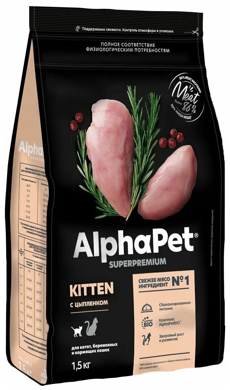 ALPHAPET SUPERPREMIUM сухой корм для котят, беременных и кормящих кошек с цыпленком 1,5кг х 5 шт интересное: