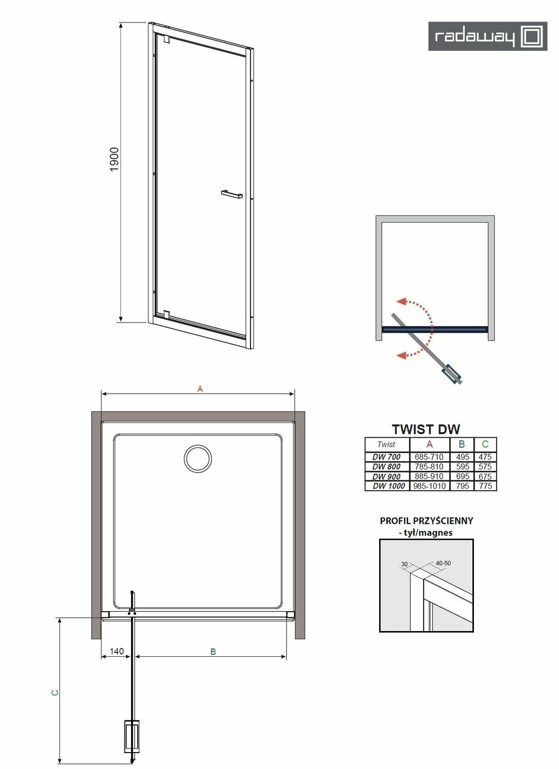 Душевая дверь Radaway Twist DWJ 100 стекло прозрачное интересное: