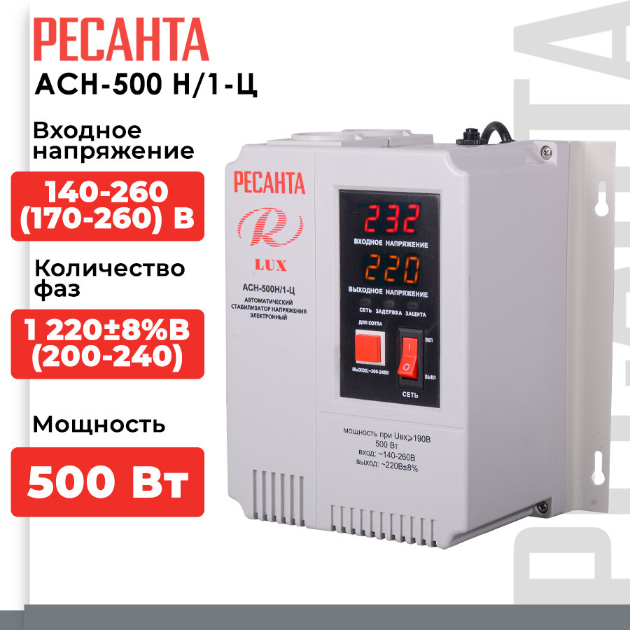 Стабилизатор напряжения РЕСАНТА Lux АСН- 500Н/1-Ц настенный, цифровой/