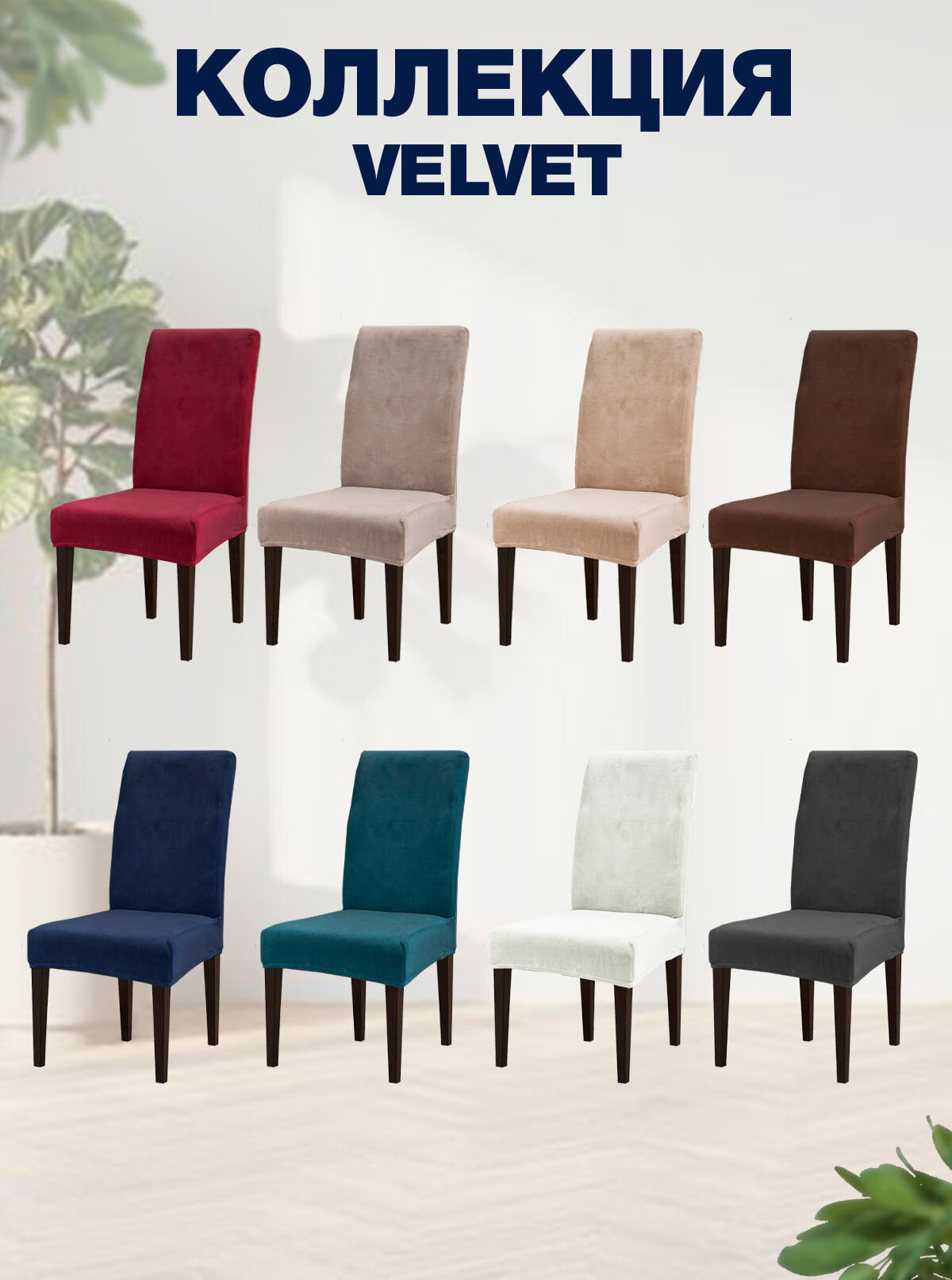 Чехол на стул, чехол для стула со спинкой, чехлы для стульев, Коллекция "Velvet", Коричневый, Комплект 4 шт.