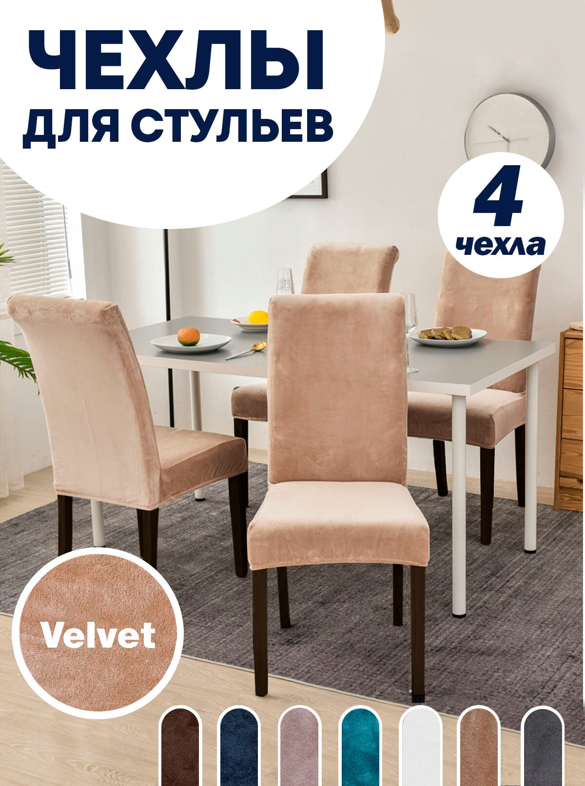 Чехол на стул, чехол для стула со спинкой, чехлы для стульев, Коллекция "Velvet", Слоновая кость, Комплект 4 шт.