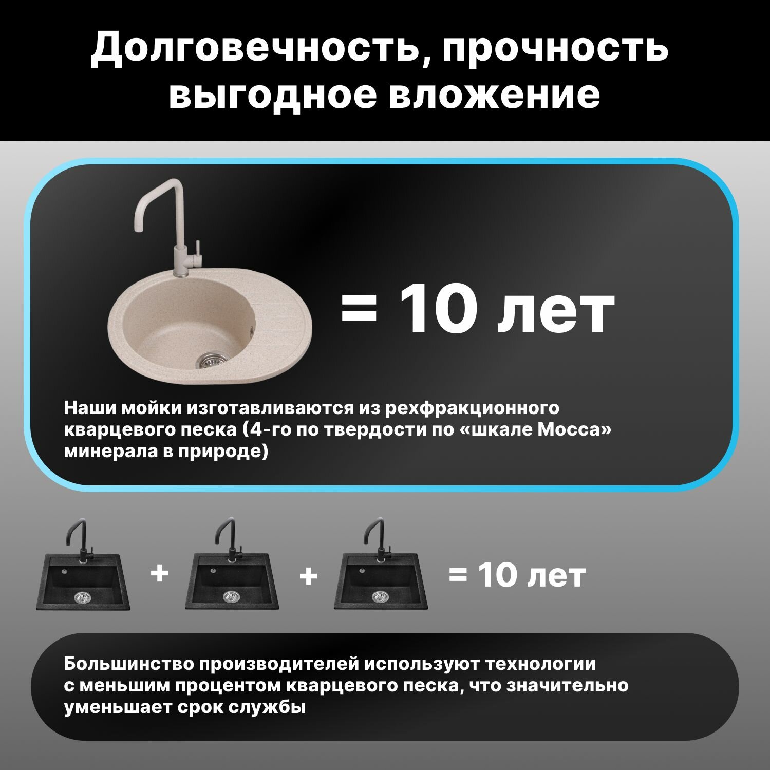 Мойка для кухни из искусственного камня BENEFIT серебро 730х470 мм, AV Engineering