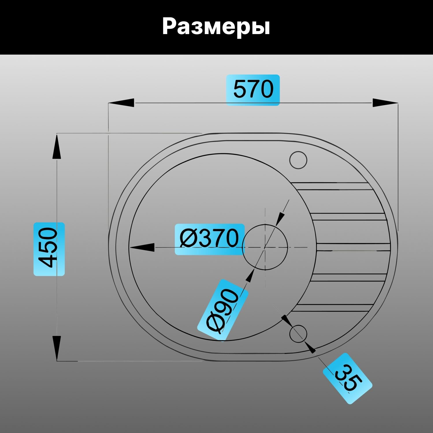 Мойка кухонная из искусственного камня RIO серый, 570х450 mm, AV Engineering (AV580450RGRA)