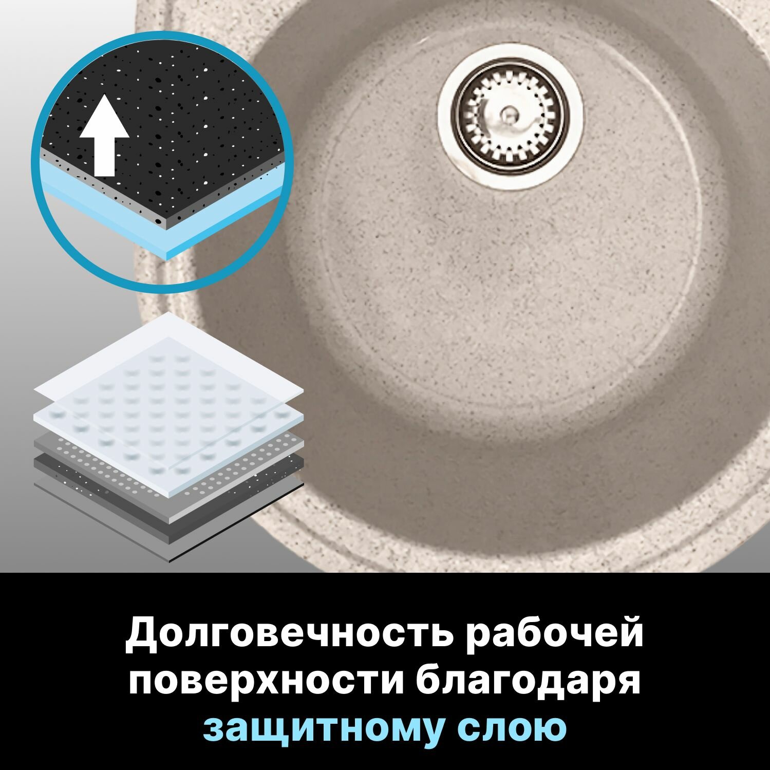 Мойка кухонная из искусственного камня GOLD гранит 505х505 мм, AV Engineering (AV510000GGTA)