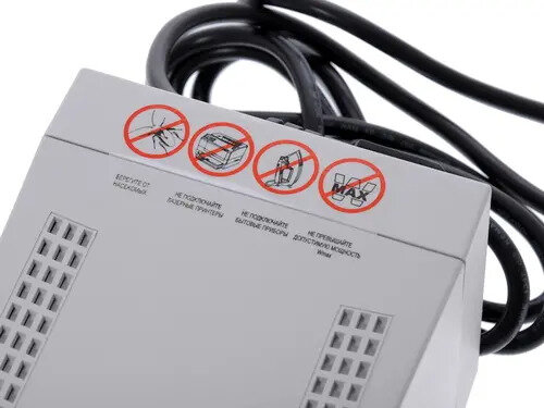 | Плюсы: | Маленький размер, ПК с ним работает стабильно, у меня работает в диапазоне 208 - 235воль в сети. Маленький размер. Четыре гнезда для вилок, очень удобно, не нужно дополнять удлинителями. |