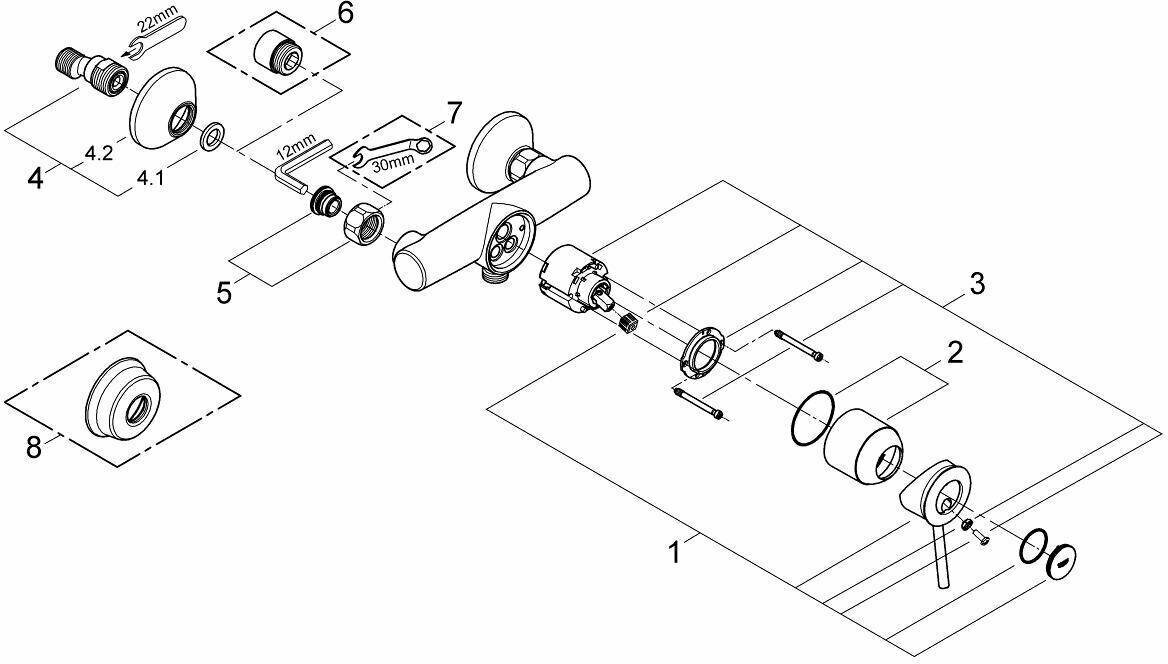 Grohe Настенный однорычажный смеситель для душа GROHE BAUCLASSIC 32867 000