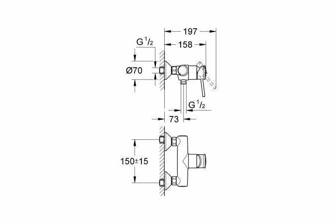 Grohe Настенный однорычажный смеситель для душа GROHE BAUCLASSIC 32867 000