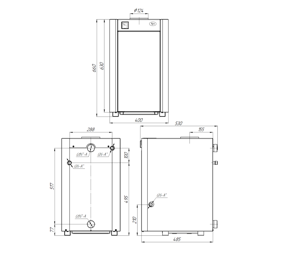 Напольный газовый котел ЛУЧ КСГ-12 на 120 М2, с открытой камерой сгорания