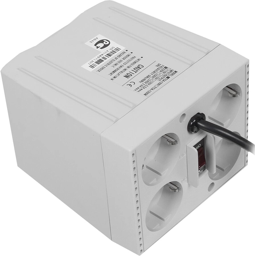 | Плюсы: | Релейный стабилизатор, 600 Вт активной мощности, 4 розетки на вход. |