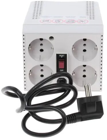| Плюсы: | 4 розетки. Практически бесшумный,слабые щелчки при стабилизации. |