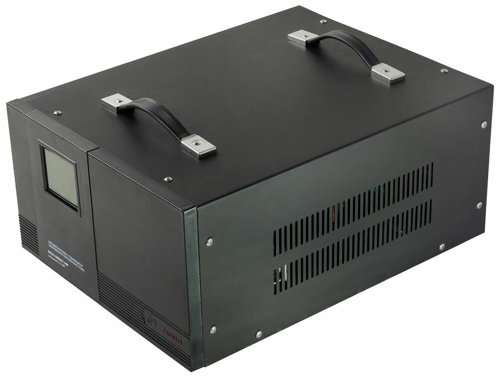 Для защиты электроприборов пришлось заказать такой стабилизатор напряжения. Рабочие параметры высвечиваются на цифровом дисплее. |