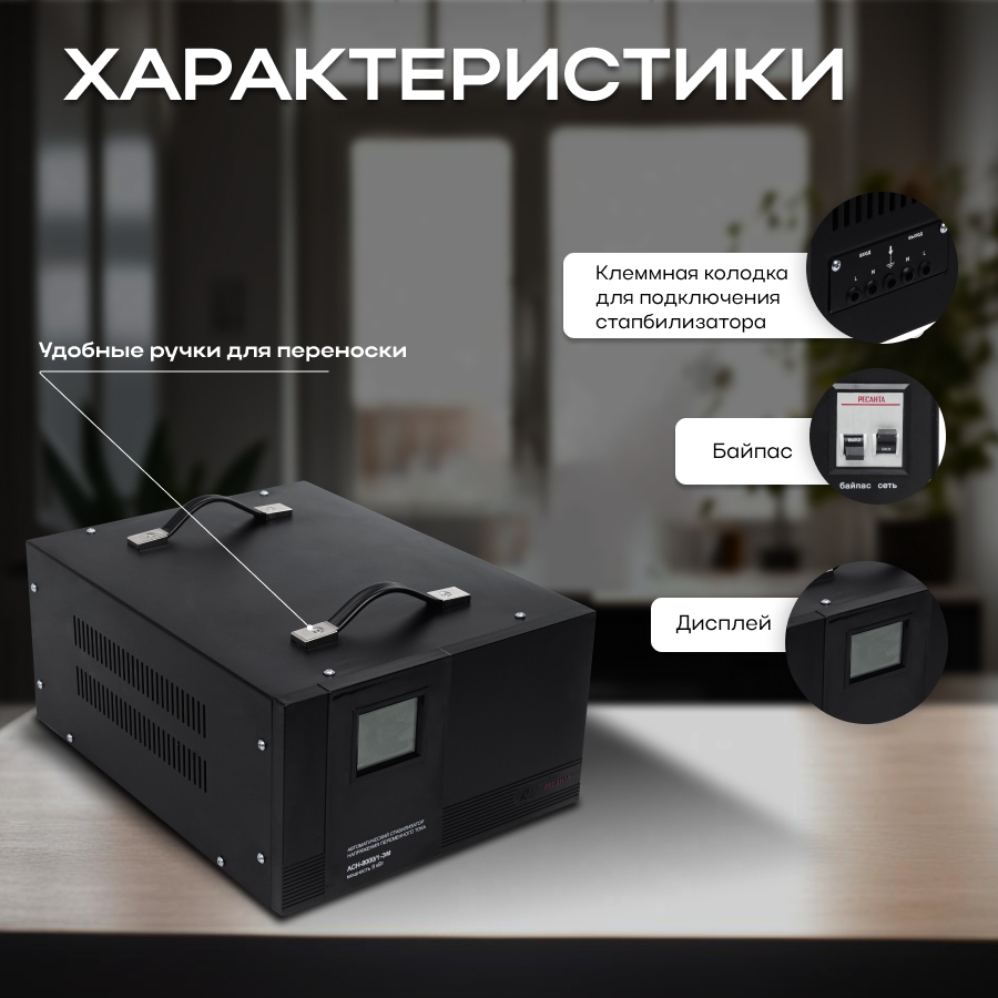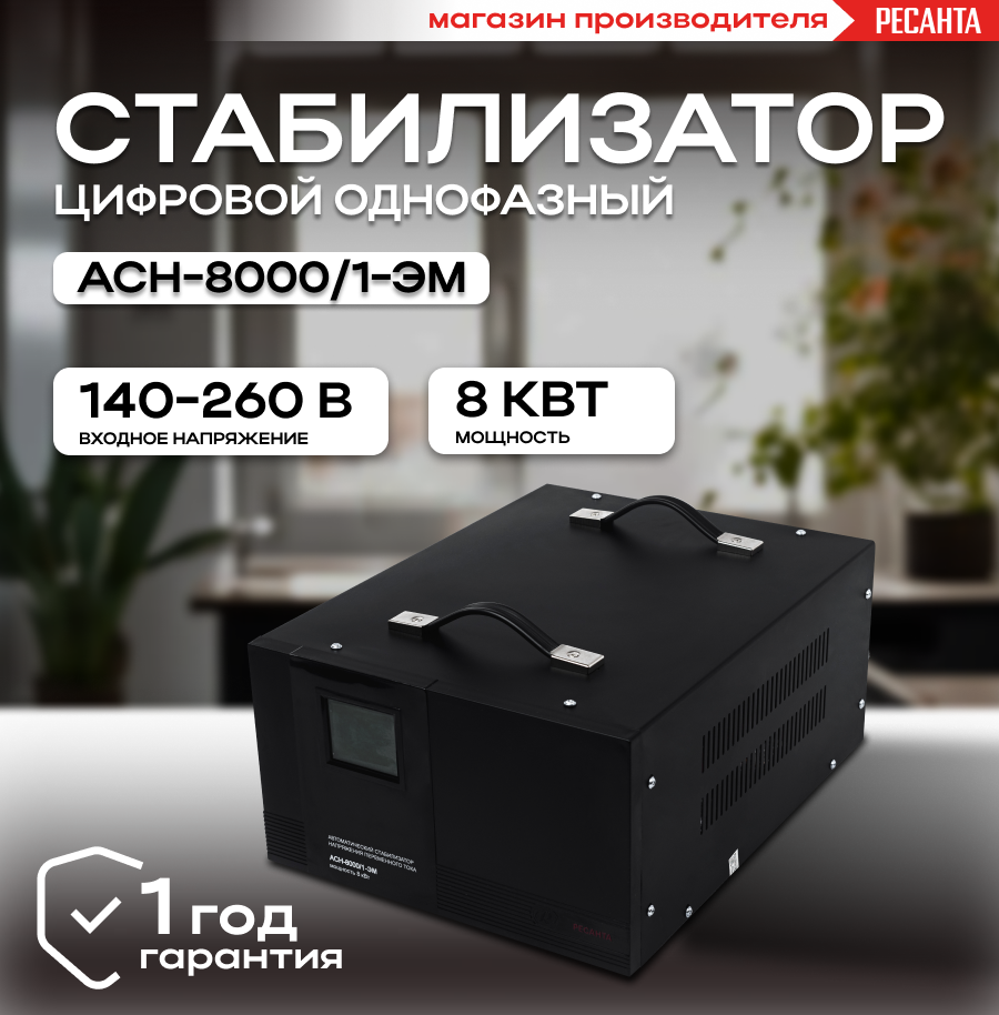 Стабилизатор напряжения однофазный РЕСАНТА ACH-8000/1-ЭМ (8 кВт)