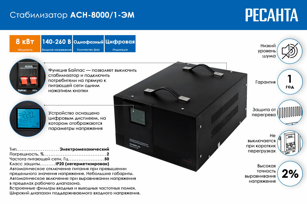 Стабилизатор Ресанта АСН-8000 /1-ЭМ