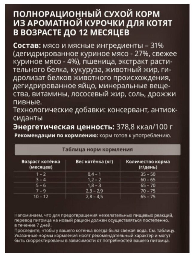 Winner Meat полнорационный сухой корм из курицы для котят в возрасте до 12 мес, 300 гр интересное: