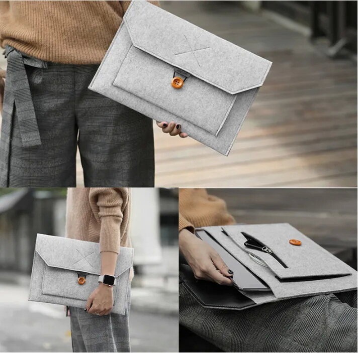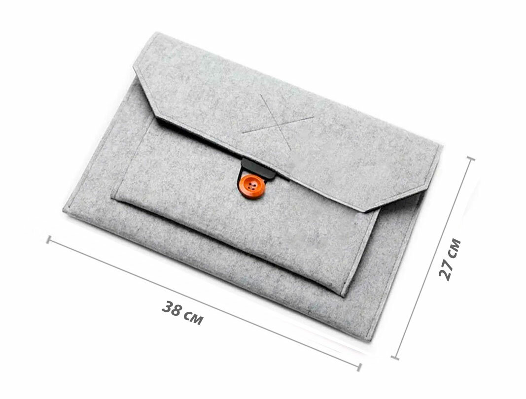 Купить Чехол войлочный для ноутбука, макбука 13-14 дюймов, чехол-конверт универсальный для документов, размер 38-27-3 см, светло-серый