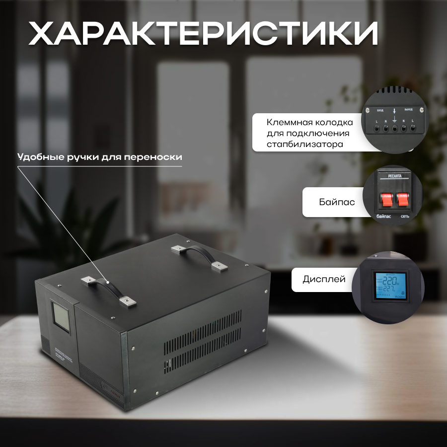 Стабилизатор напряжения однофазный РЕСАНТА ACH-10000/1-ЭМ (10 кВт)