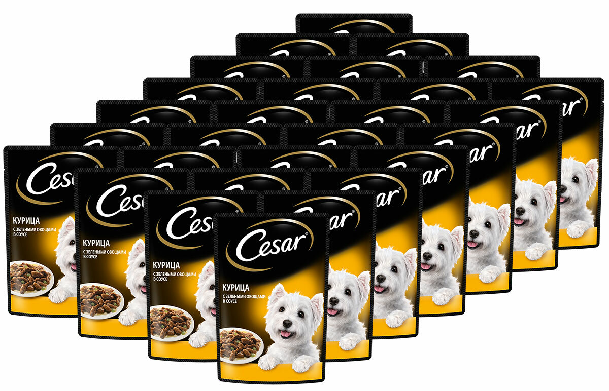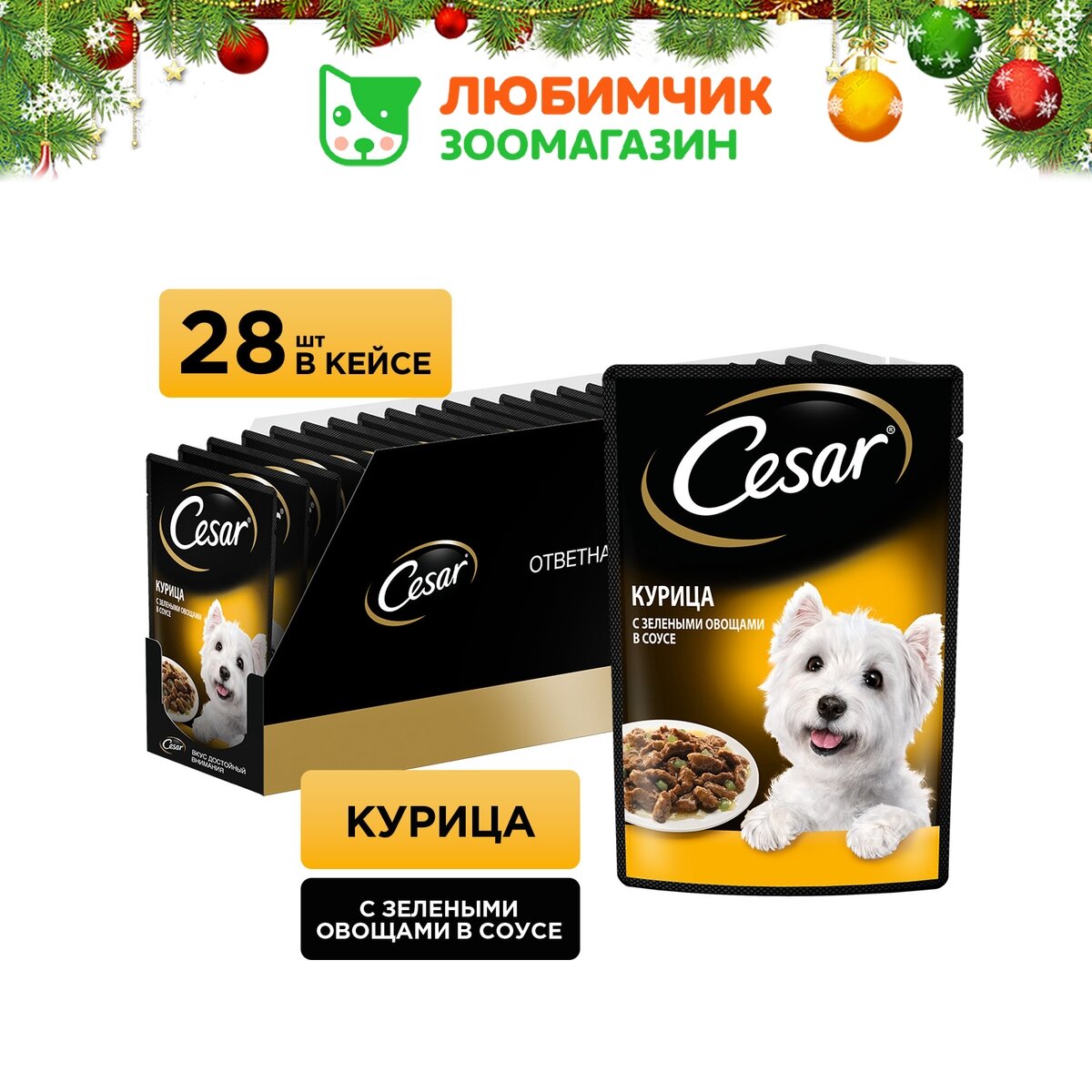 Купить Влажный корм Cesar для взрослых собак, с курицей и зелеными овощами в соусе, 85г х 28шт