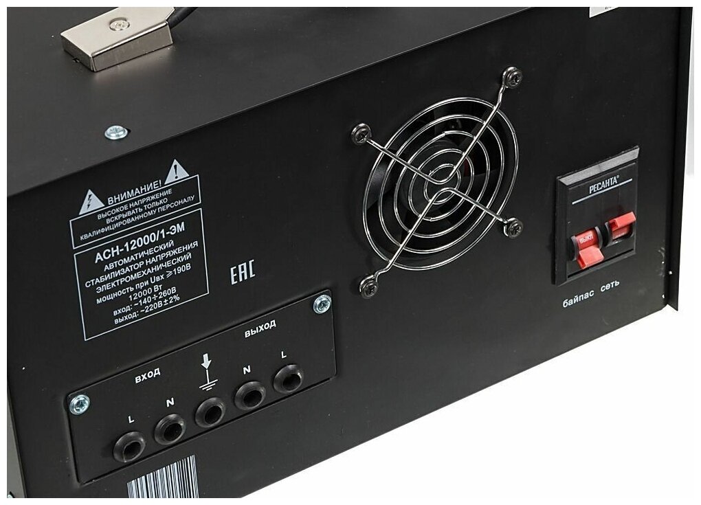 Стабилизатор напряжения однофазный РЕСАНТА ACH-12000/1-ЭМ черный 12000 Вт 400 мм 323 мм 183 мм 26.7 кг