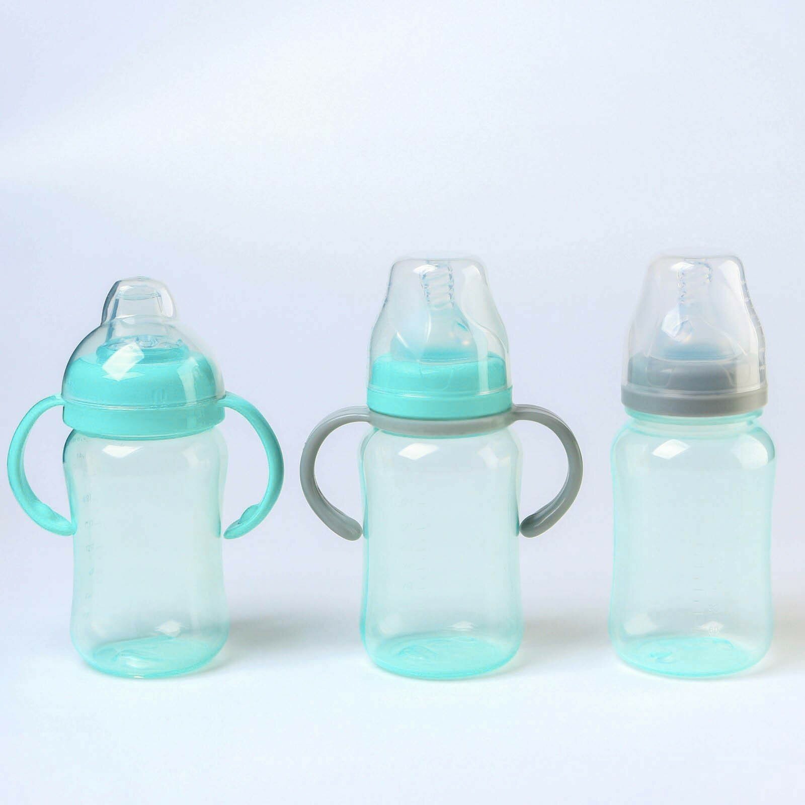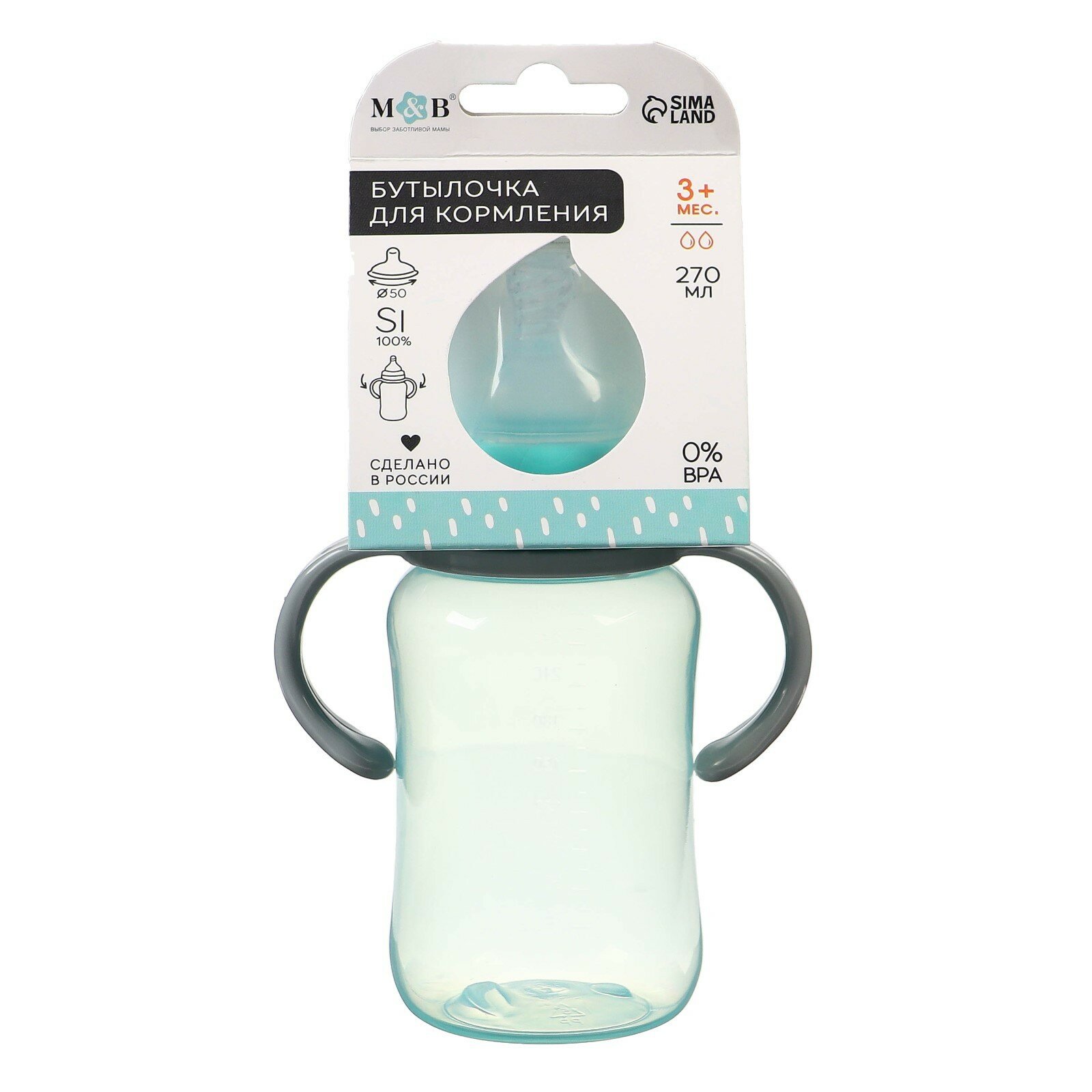 Бутылочка для кормления, широкое горло, 270 мл, с ручками, бирюзовый/серый интересное: