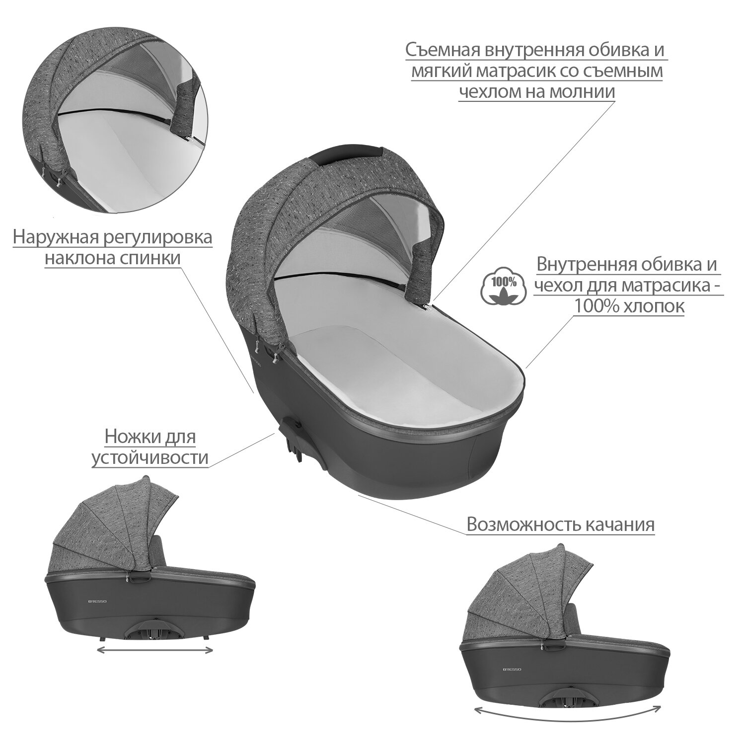 | Совместимые автокресла | Aвтокресло группа 0+ Bobostello Mars+адаптер Mars/ARAS |