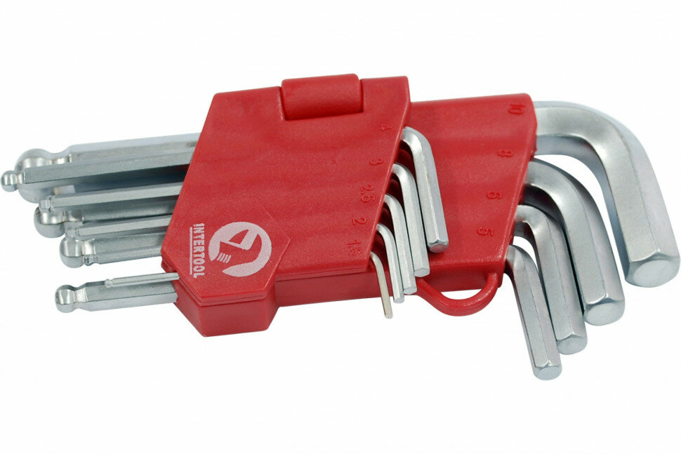 Набор Г-образных шестигранных ключей INTERTOOL 9 ед., 1.5-10 мм, Cr-V, 55 HRC Small HT-0605 интересное: