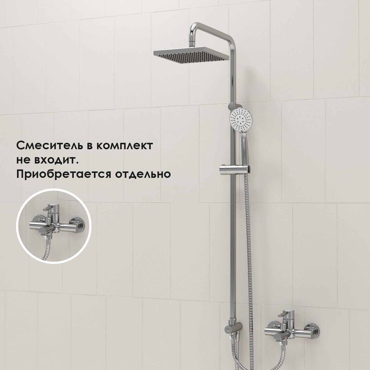 | Дополнительная информация | высота стойки для душа: 1161 мм; длина верхнего душа: 200 мм; ширина верхнего душа: 200 мм |
