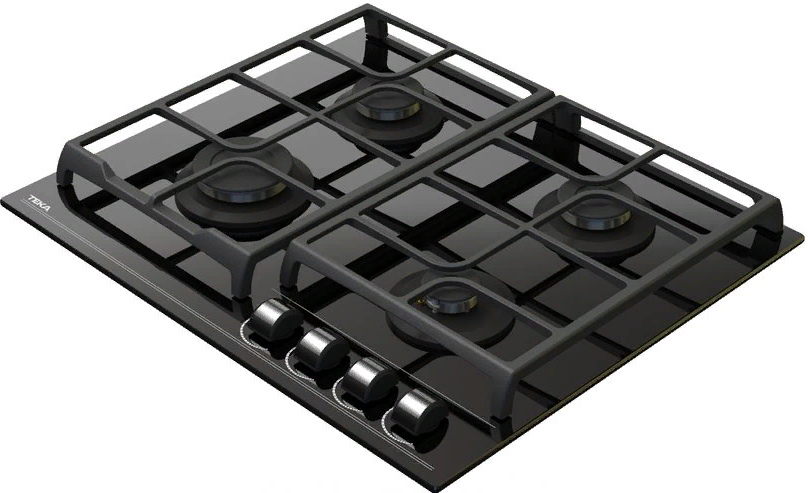 Варочная панель газовая встраиваемая Тека / Тека GBC 64100 KBN BLACK закаленное стекло черный 98х600х510мм 4 конфорки 2 решетки / газ-контроль / интересное: