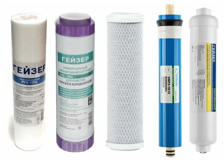 | Плюсы: | отличный комплект для Гейзер Нанотек с оригинальной мембраной. Поставляется без заводской упаковки (как отдельно подобранные катриджи) |