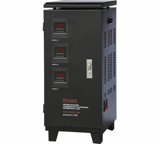 | Отзыв: | У нас на работе даже в 3-фазное сети напряжение постоянно просаживается, из-за чего начинает чудить и сбоить оборудование. Ситуацию удалось исправить с помощью трехфазного стабилизатора напряжения Ресанта АСН-80000/3-ЭМ, который рассчитан на 80 Квт, что для нас вполне достаточно. Агрегат тяжелый, но на колесах. Напругу стабильно держит по всем 3 фазам.