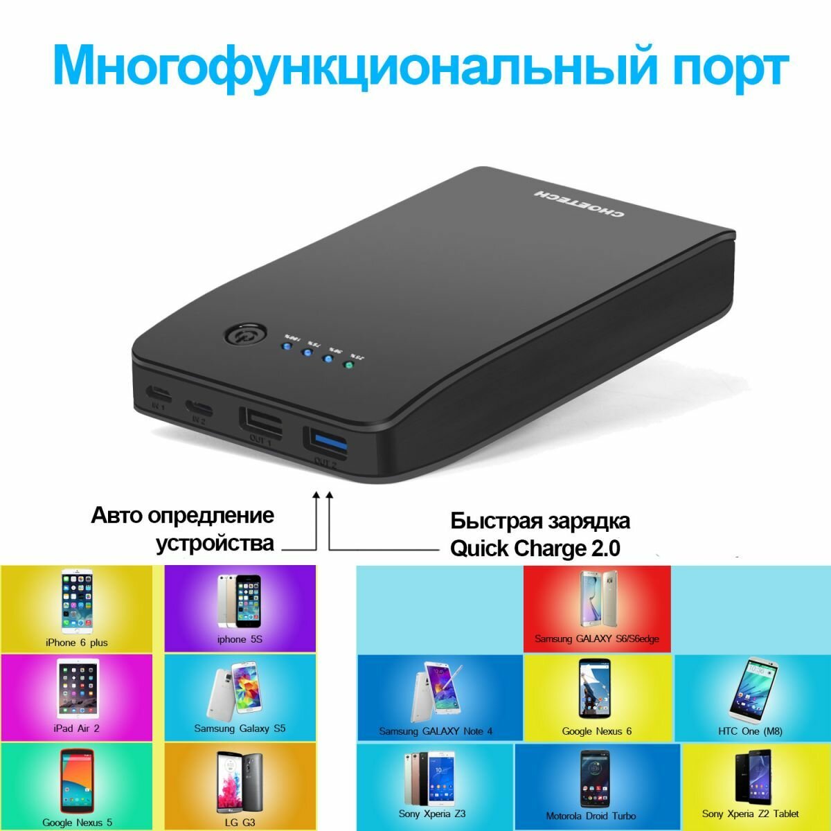 Внешний аккумулятор CHOETECH B613Q Power Bank 20000mAh интересное: