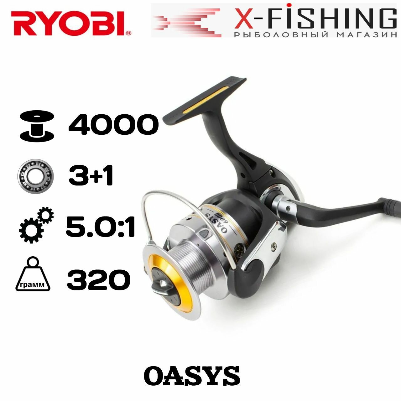 Катушка Oasys 4000 Ryobi, 4 подшипника, 5.0:1