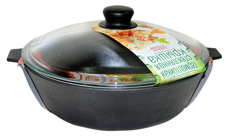 Сковорода чугунная с двумя ушками 280*80 со стеклянной крышкой у8082 Камская посуда интересное: