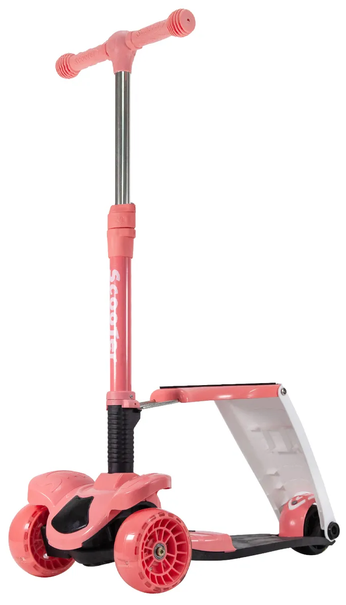 Самокат беговел детский Трехколесный складная ручка/складное сидение /светящиеся колеса 120 см интересное:
