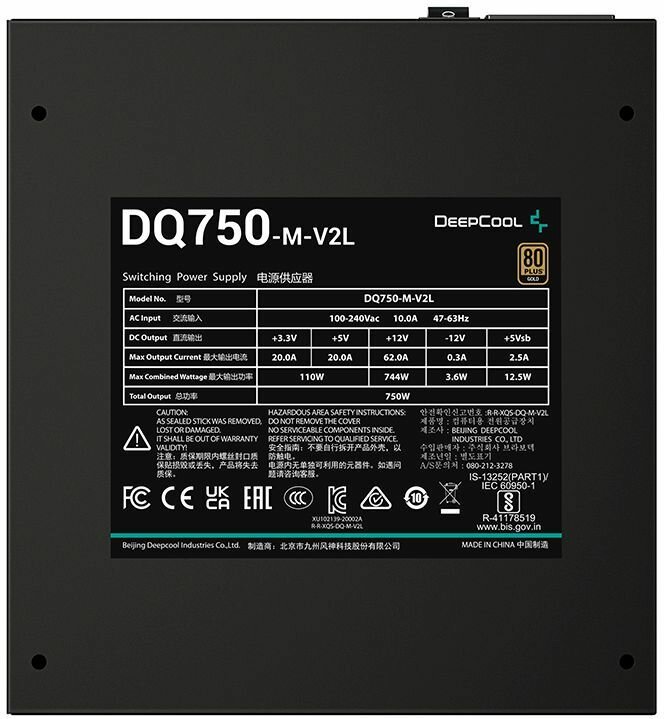 Блок питания 750W DeepCool DQ750-M-V2L, черный, 80 Plus Gold, APFC, ATX