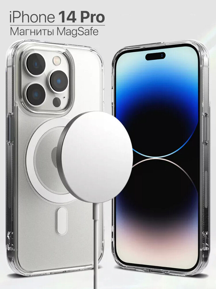 Купить MagSafe чехол для IPhone 14 Pro с магнитным креплением /+ функция Mag Safe для смартфонов Apple/ Чехол Магсейф силиконовый противоударный, прозрачный