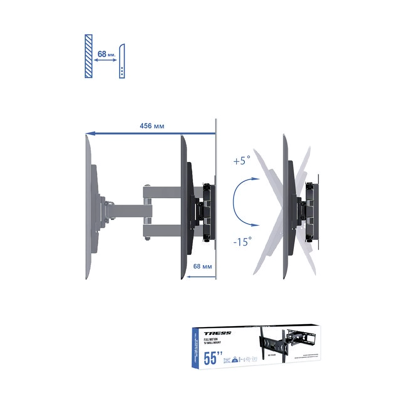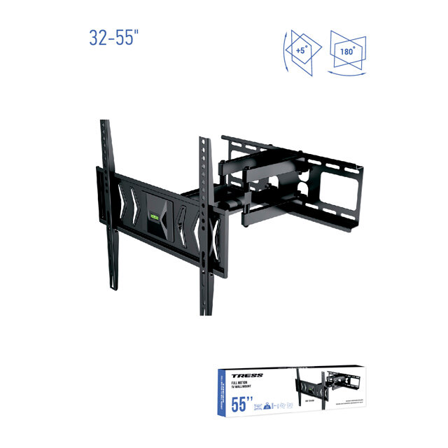 TRESS WM 1044M черный 32-55 от + 5 до -15 градусов. Поворот 180 градусов. Вылет от стены 68-456 мм. Крепление стандарта VESA 100х100, 100х200, 200х200