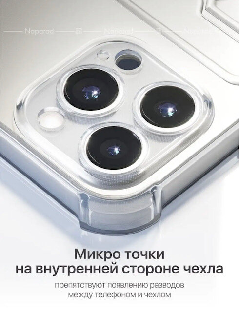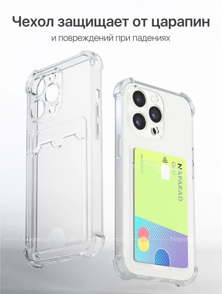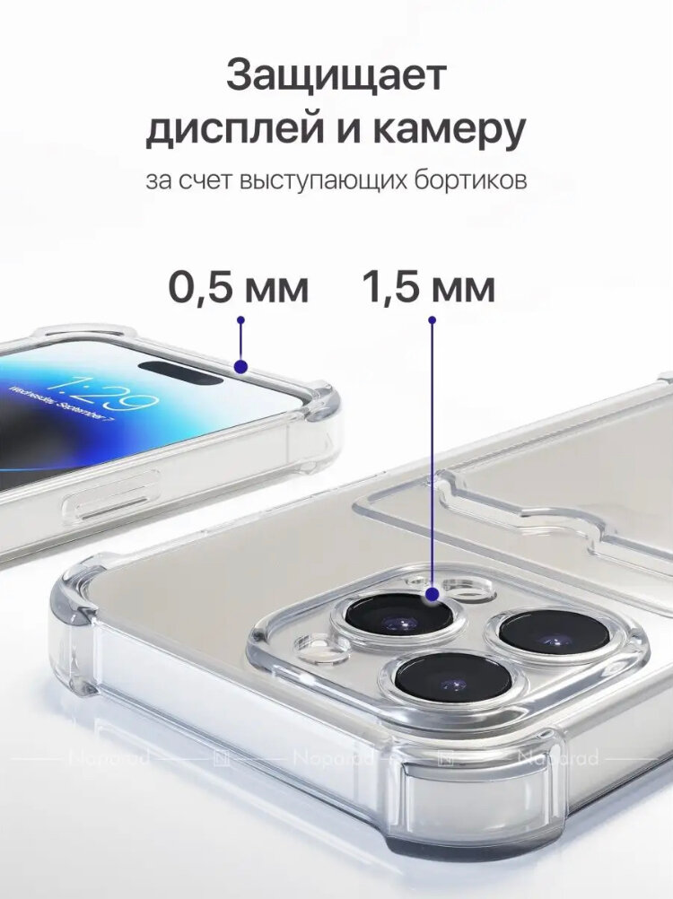 СохранитьЗащитный силиконовый чехол прозрачный №05 с карманом для карты для Apple iPhone 14 Pro (Эпл Айфон 14 Про), карман (картхолдер) с защитой камеры интересное: