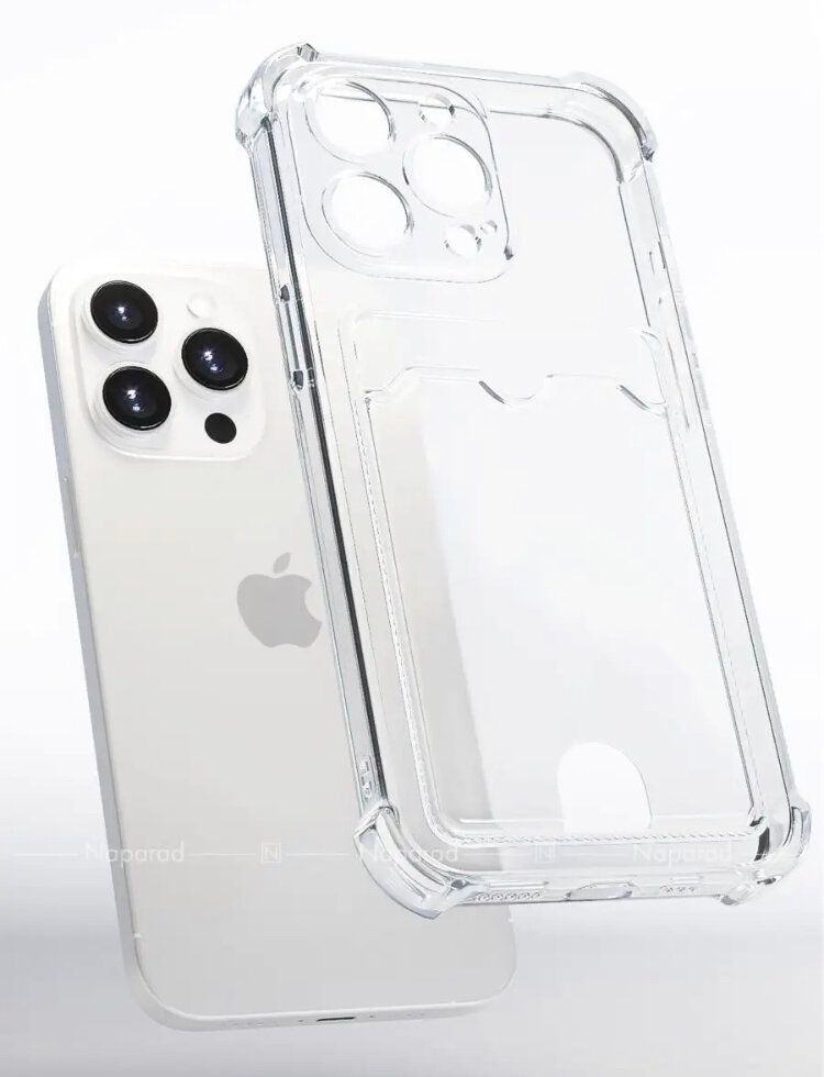 Чехол №05 для Apple iPhone 14 Pro / Прозрачный силиконовый чехол с карманом для карты и защитой камеры для Эйпл Айфон 14 Про