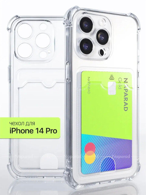 Прозрачный чехол №05 для Apple iPhone 14 Pro / противоударный силиконовый бампер клип-кейс с карманом для карты и защитой углов на Эпл Айфон 14 Про