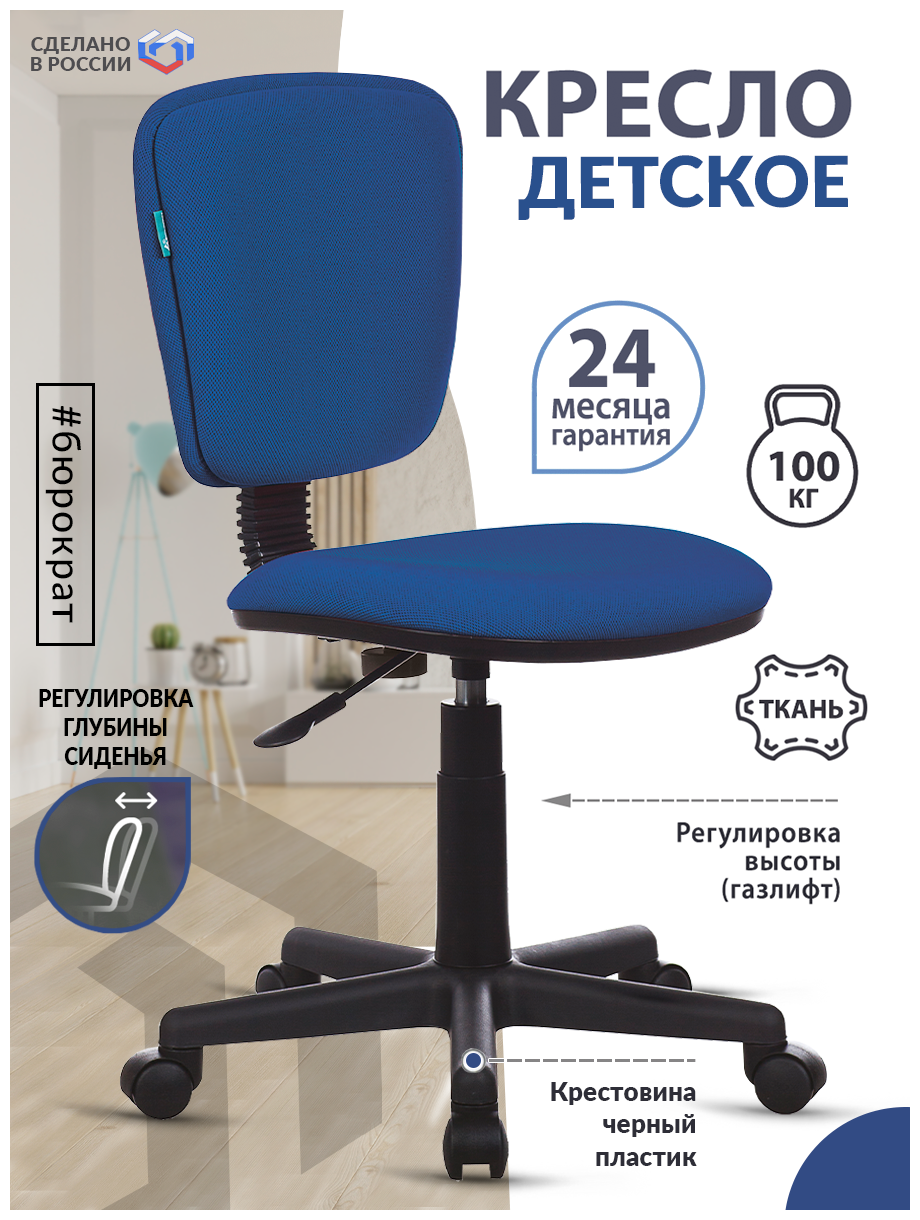 Кресло детское Бюрократ CH-204NX/PENCIL-BL, синий, без подлокотников (489816)