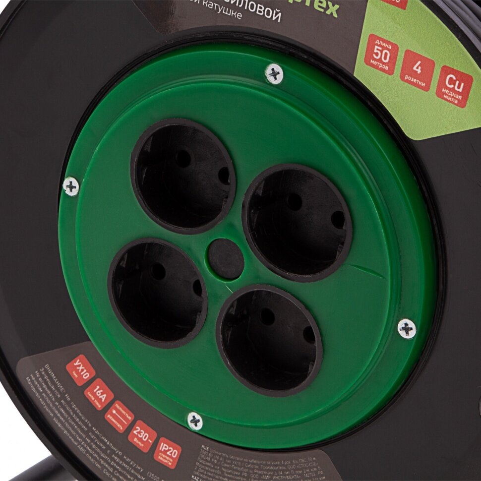 Удлинитель силовой 50 м, 16А, тип УХ10, ПВС, на кабельной катушке, 4 розетки без заземления Сибртех 95865 интересное: