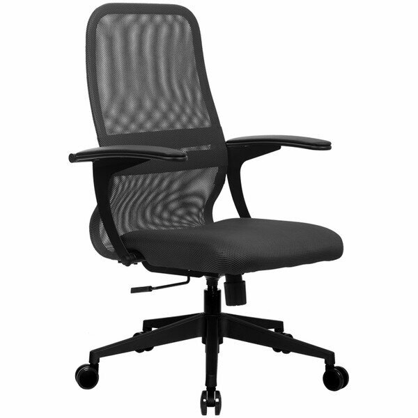 Кресло Бюрократ компьютерное темно-серое, ткань, крестовина пластик - Кресло руководителя, с подлокотниками