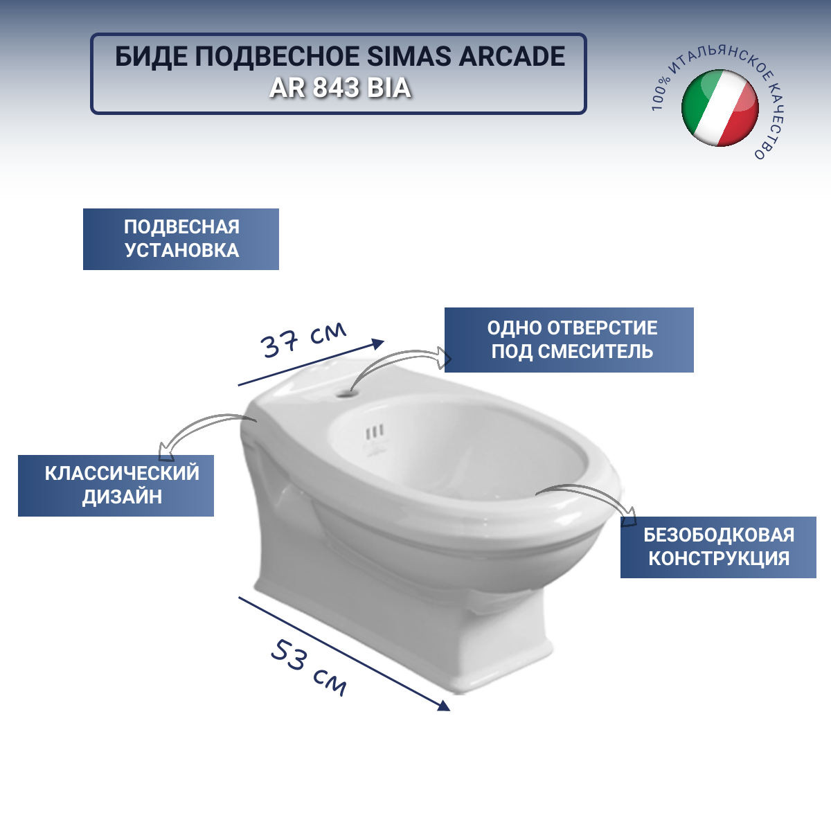 SIMAS Arcade AR843 Биде подвесное 53*37 см | с отверстием для смесителя