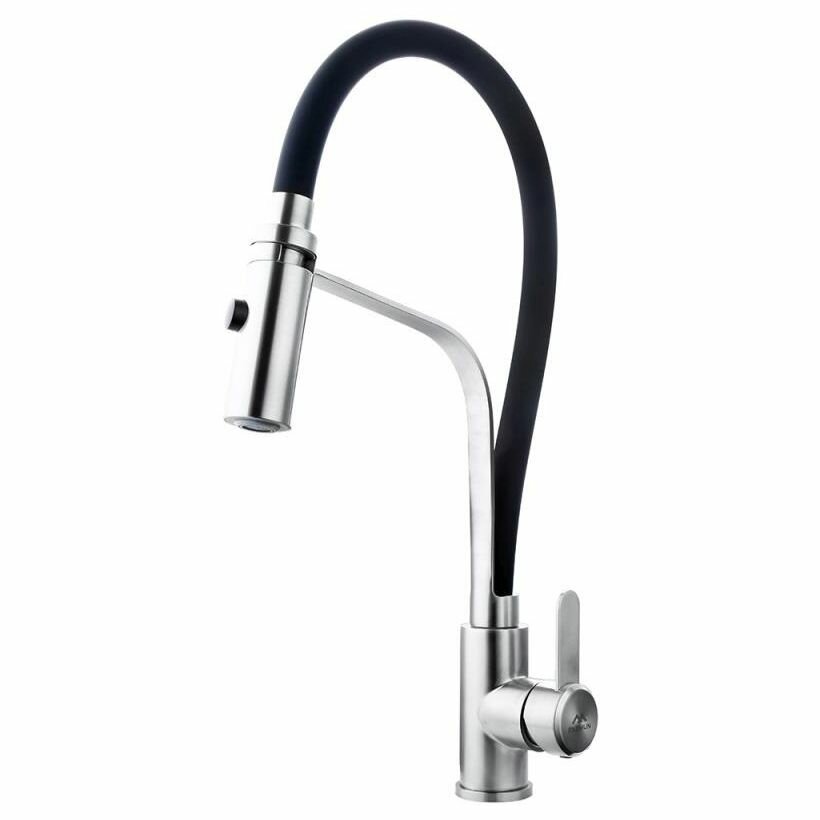FASHUN Смеситель для кухни мойки из нержавеющей стали с гибким черным изливом A54112-7